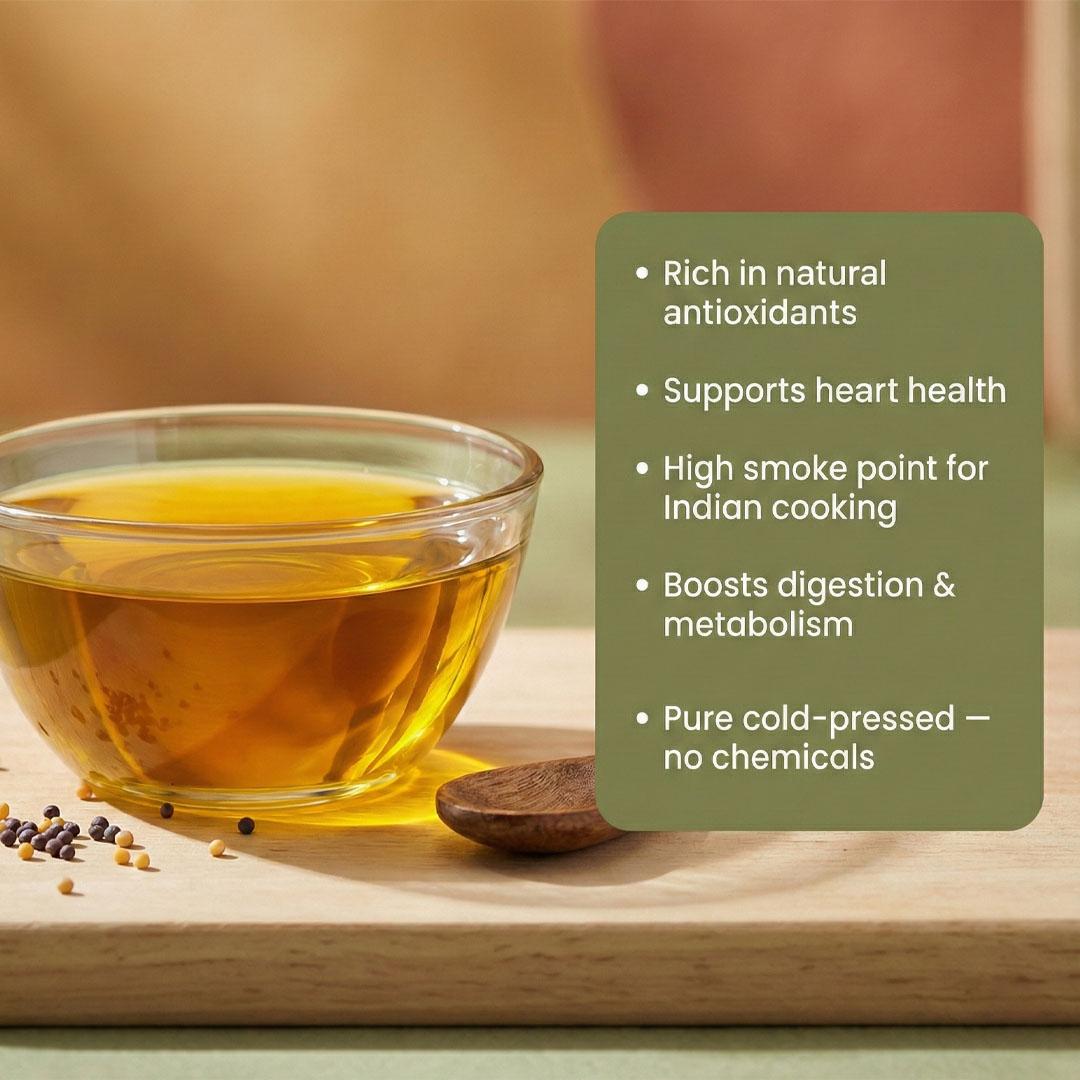 Pure Cold pressed Organic Mustard Oil brings both flavor and wellness to everyday cooking.